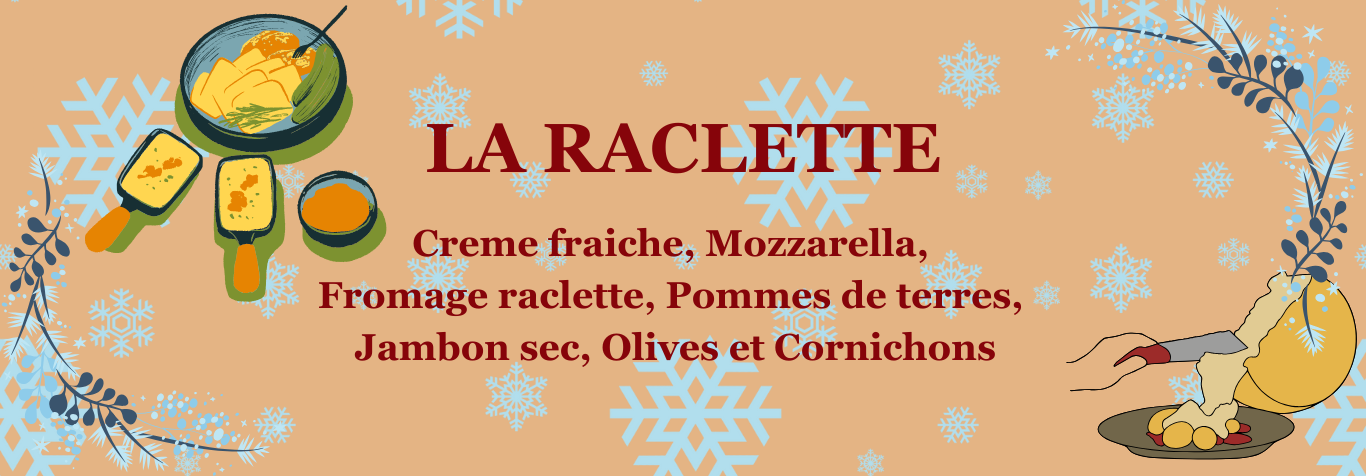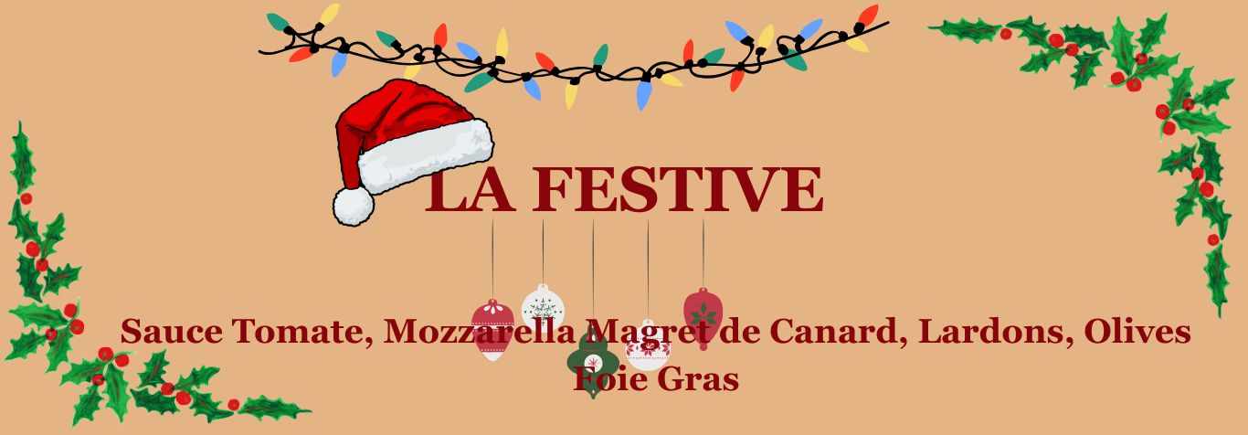 Un petit clin d’œil à notre village ! Avec sa base de crème fraîche onctueuse, qui s’accorde à des lardons gourmands, des oignons légèrement dorés et de belles tranches de pommes de terre. Au centre, un œuf délicatement posé et pour finir des olives qui viennent parfaire ce mariage rustique et généreux.